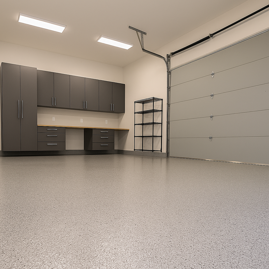 A stunning garage begins from the ground up. Traditional concrete may do the job, but a high-performance floor coating like epoxy or polyaspartic instantly elevates the space. These finishes are chemical-resistant, seamless, and easy to clean, giving your garage a professional showroom feel.